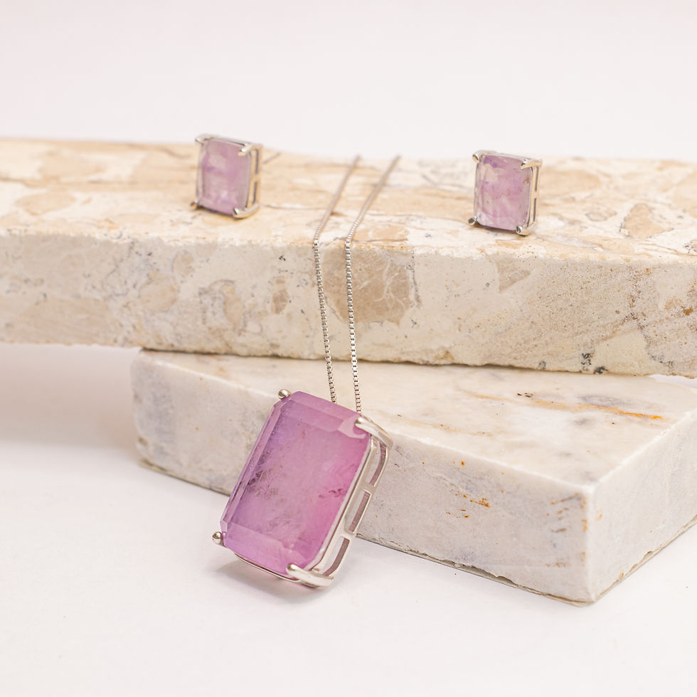Conjunto Gota com Pedra Fusion Azul, Rosa ou Rose